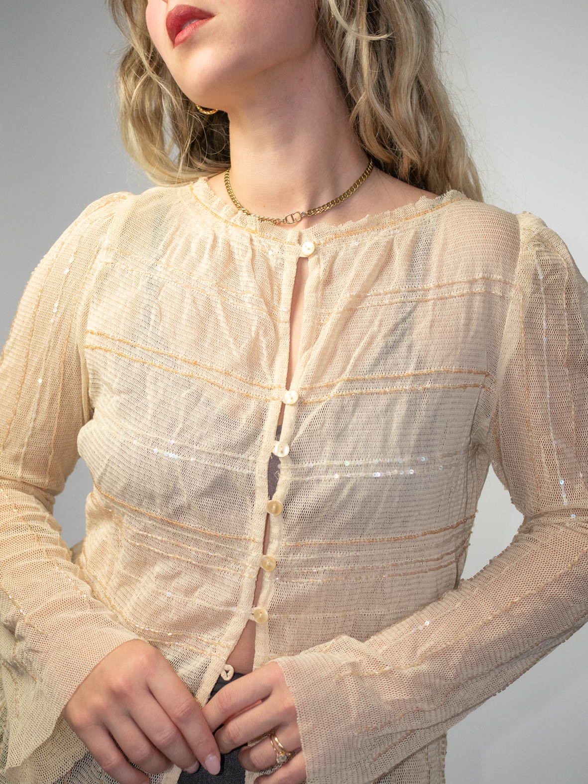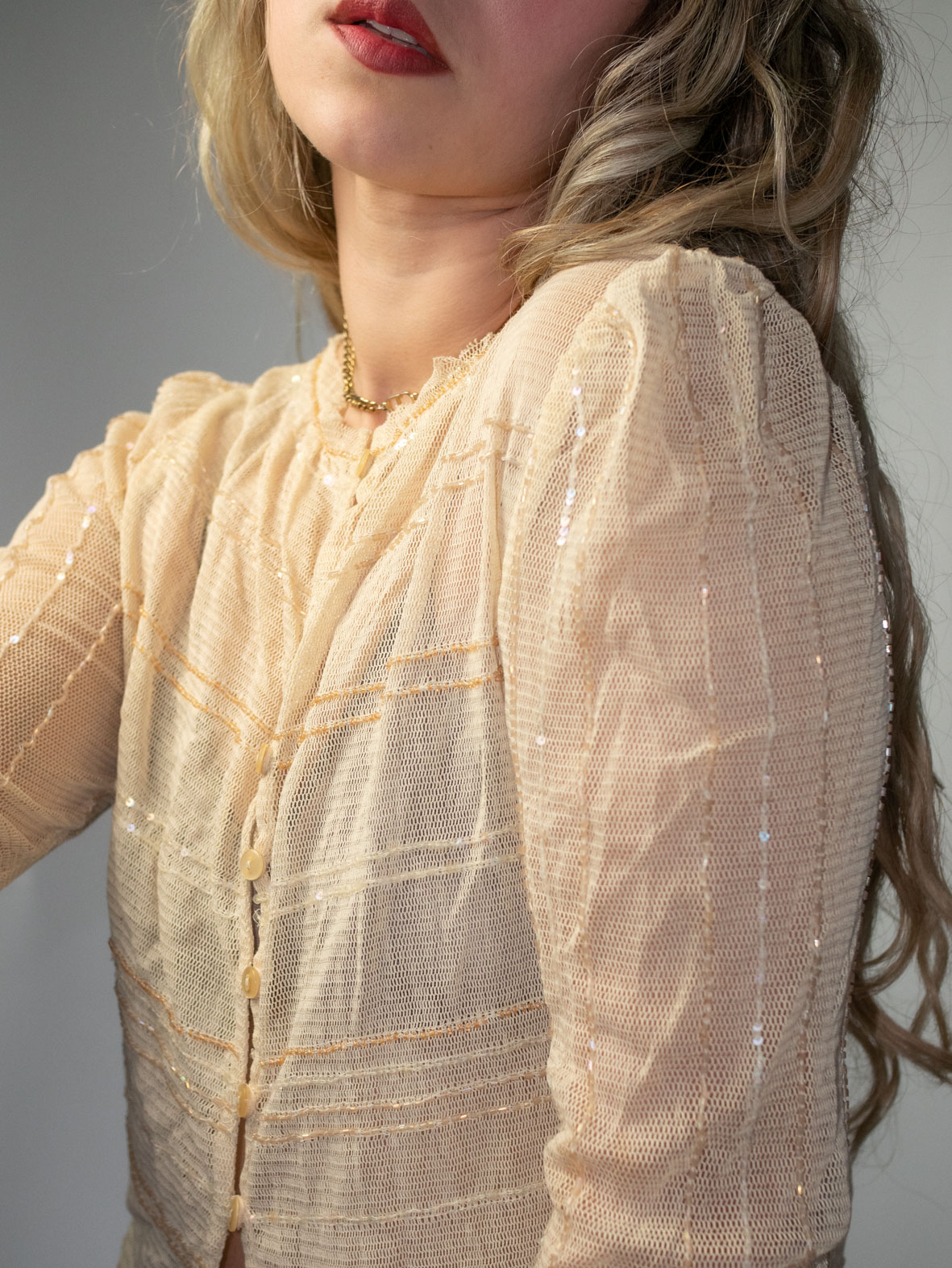 Beige Classy Vintage Cardigan with Bead Embroidery – M