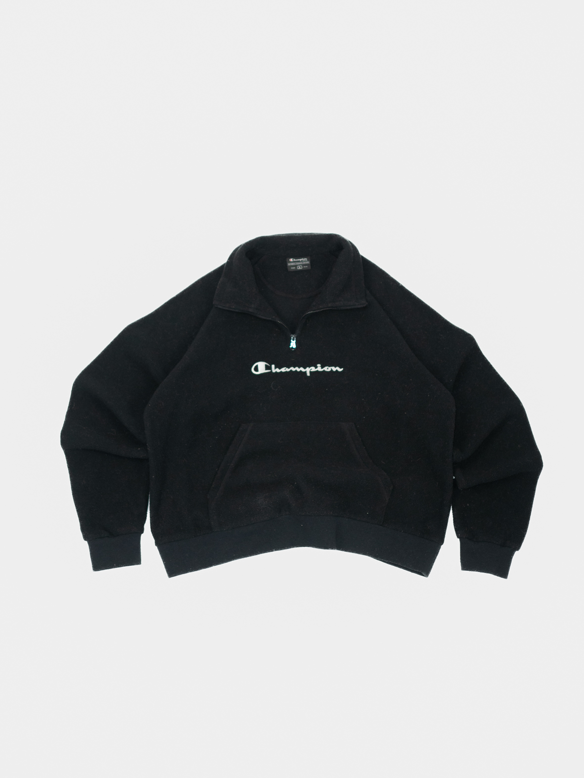 This vintage Champion fleece henley, with its iconic embroidered spell-out logo, is a timeless athleisure staple. The quarter-zip design adds versatility and style. A rare find for vintage lovers seeking sustainable fashion.