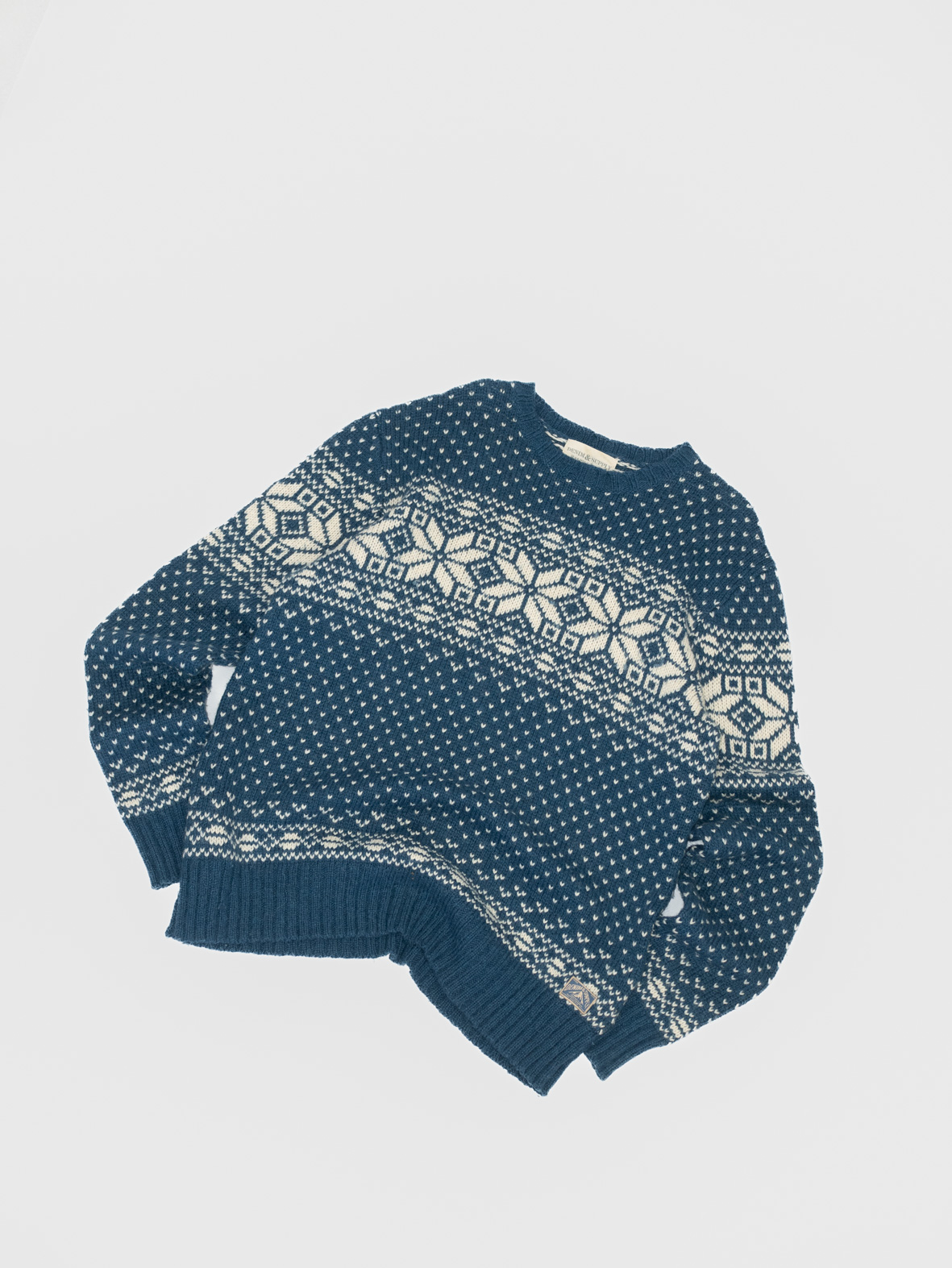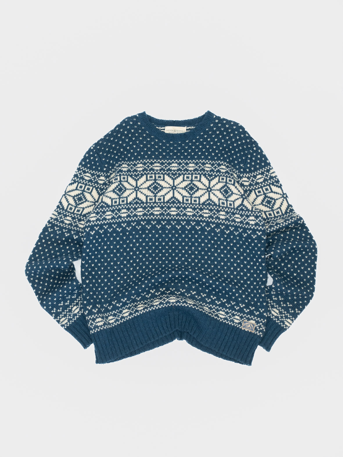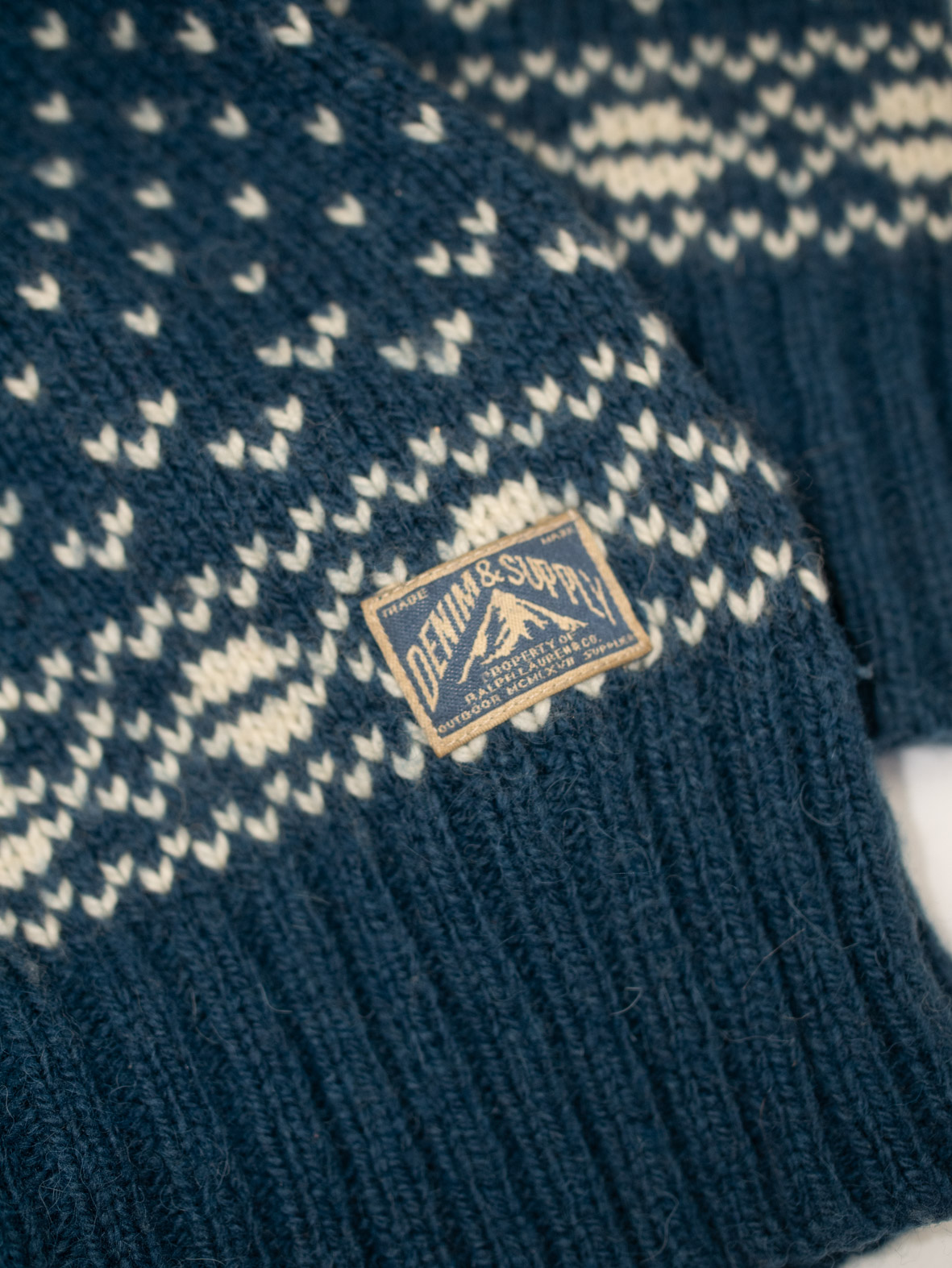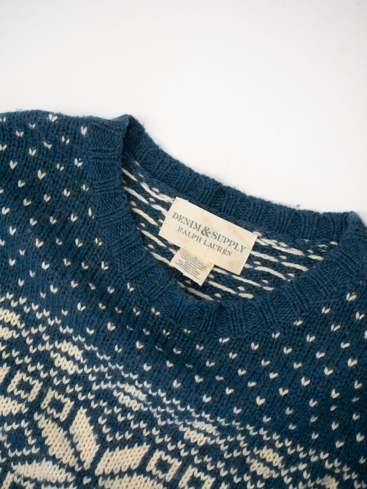 A rare find from the discontinued Denim & Supply Ralph Lauren line — a true collector’s piece with that cozy winter aesthetic everyone is searching for. Featuring a deep petrol-blue base and a cream Nordic snowflake pattern, this knit blends vintage charm with premium craftsmanship.