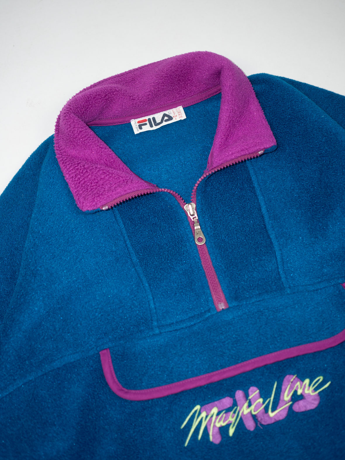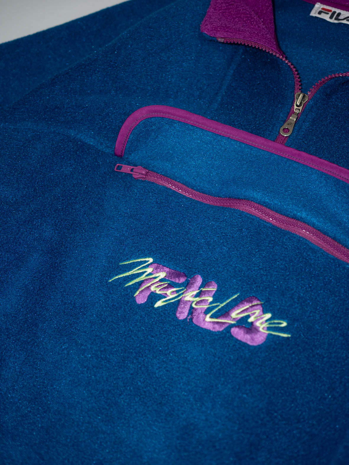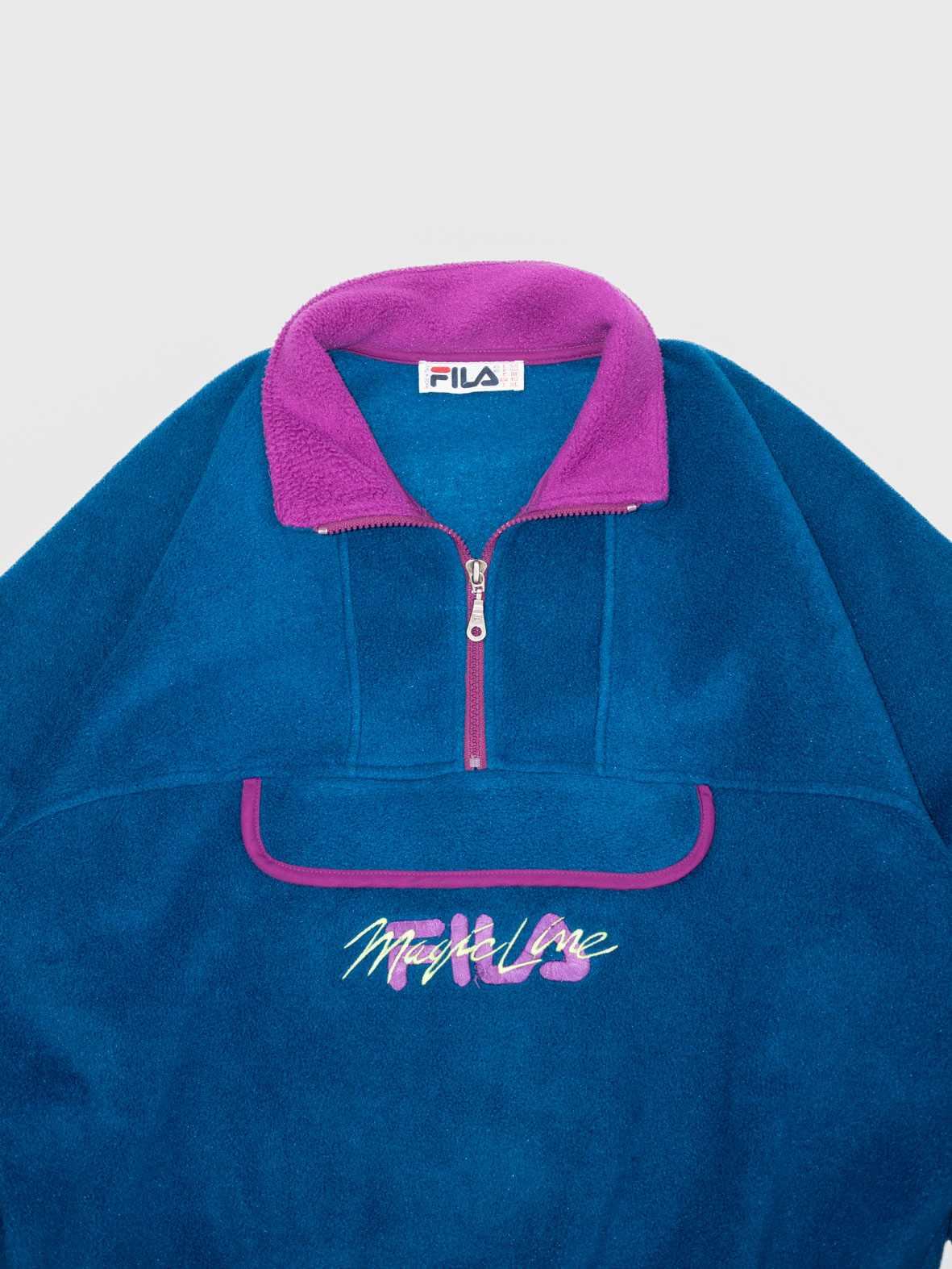 Deep blue fleece with purple collar, FILA embroidered logo and a half-zip cut. Soft, warm and iconic.