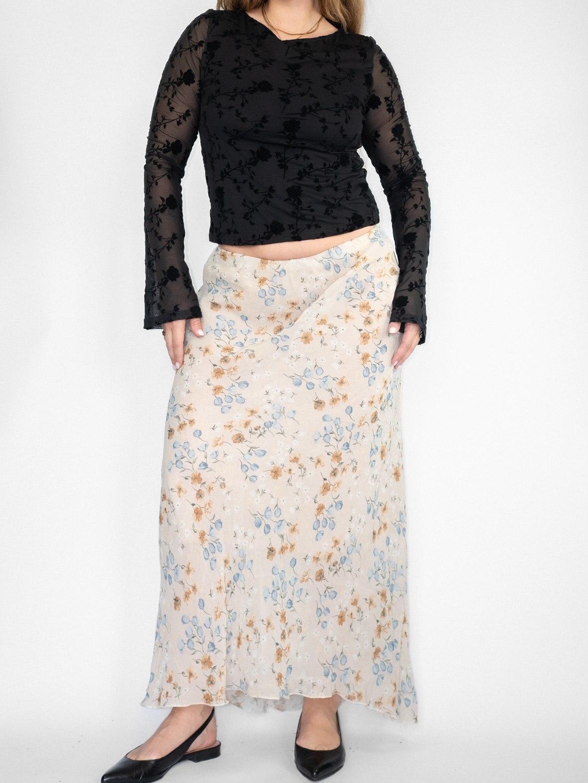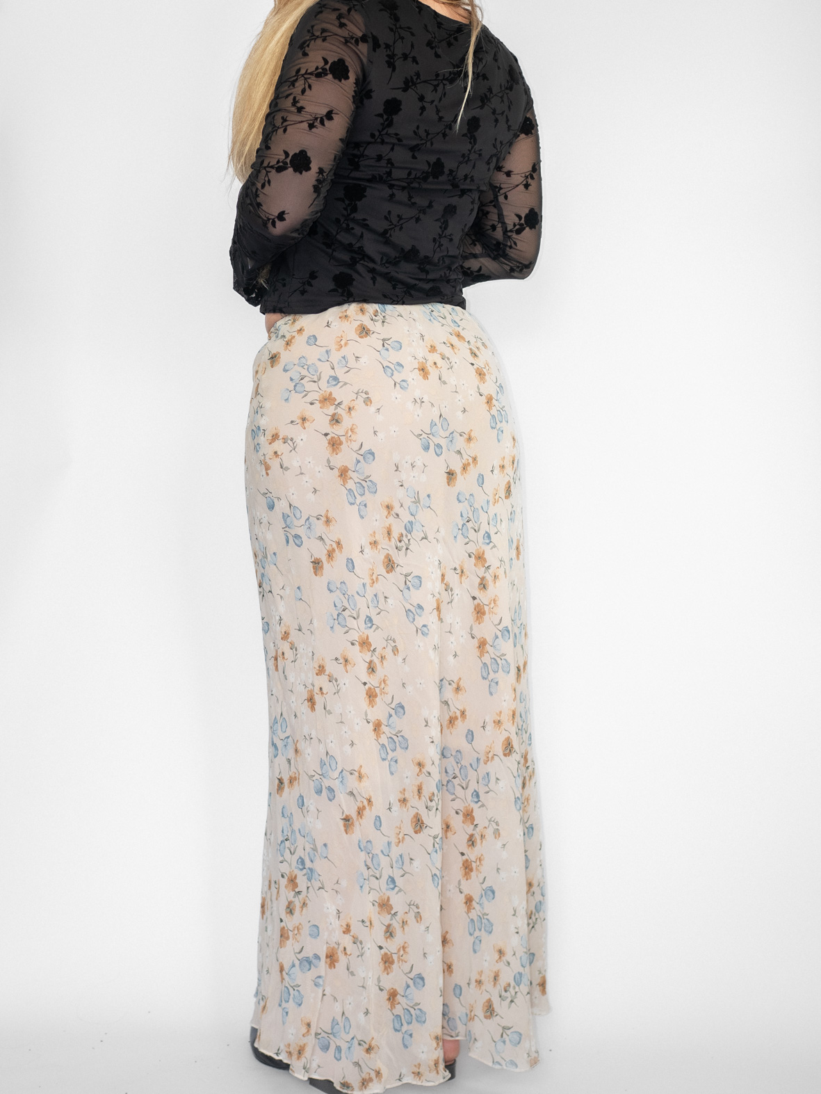 Floral Vintage Mesh Maxi Skirt – M