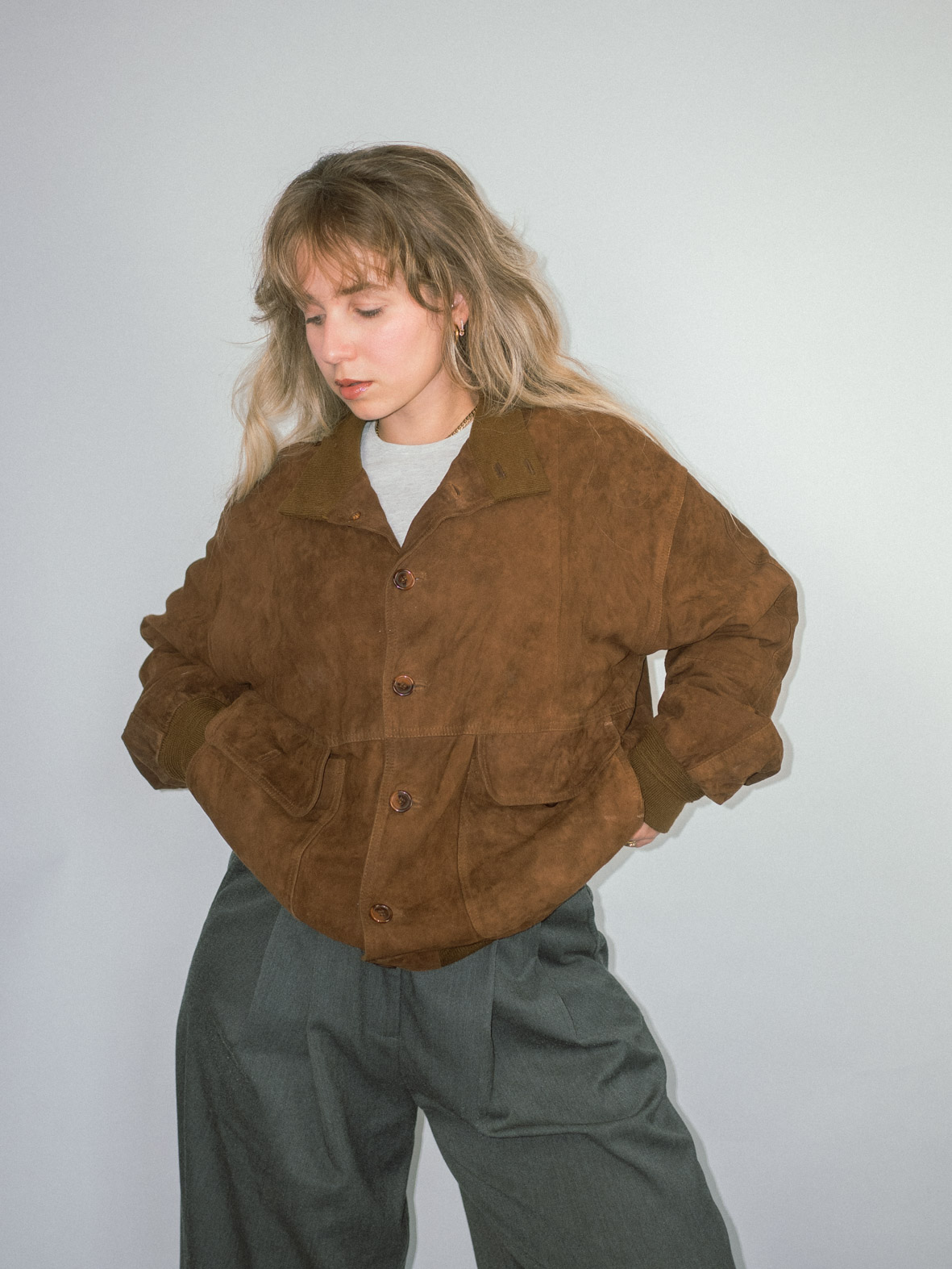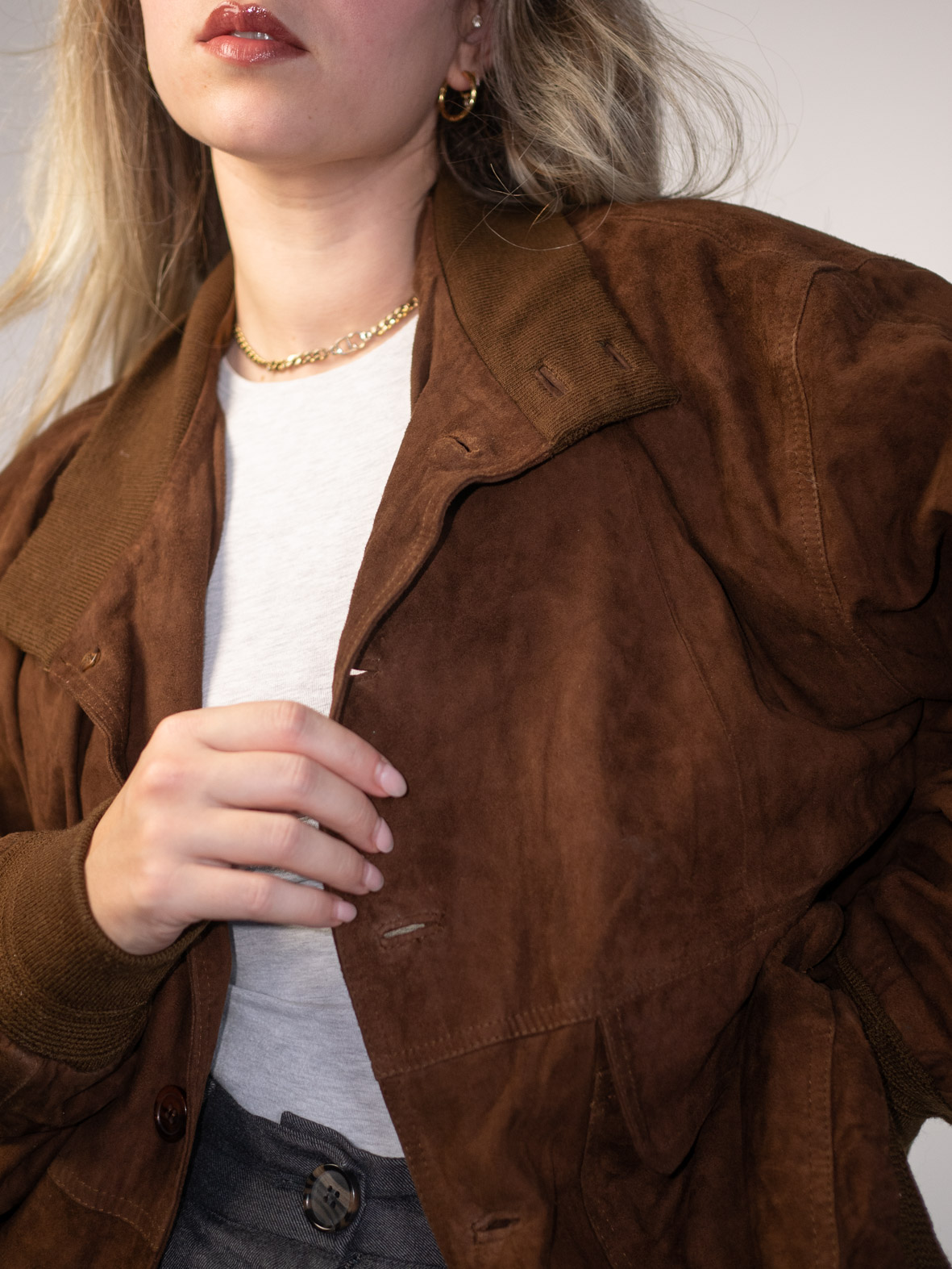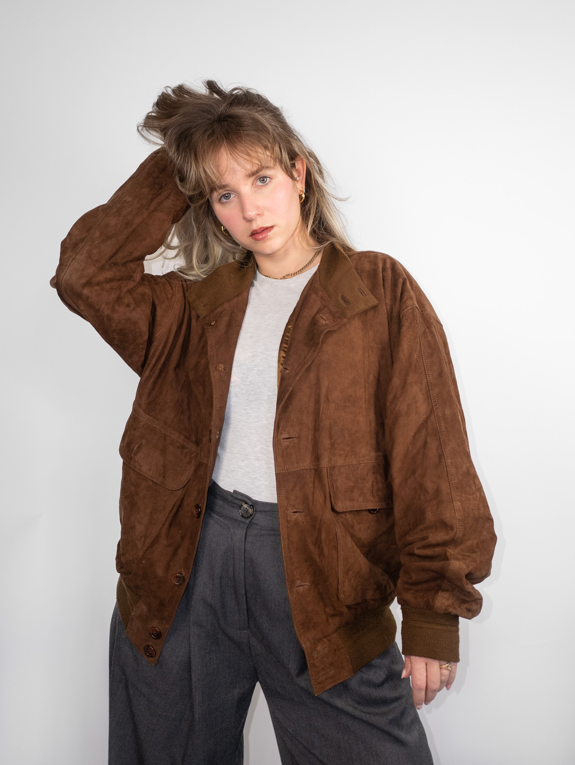 Mocca Suede Vintage 80s Bomber Jacket – M