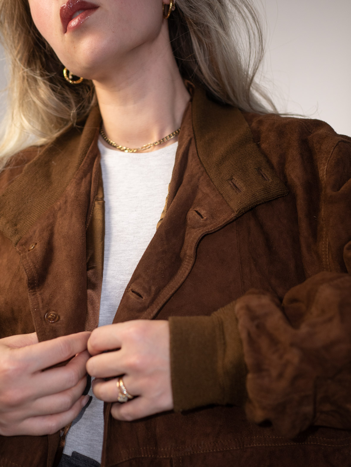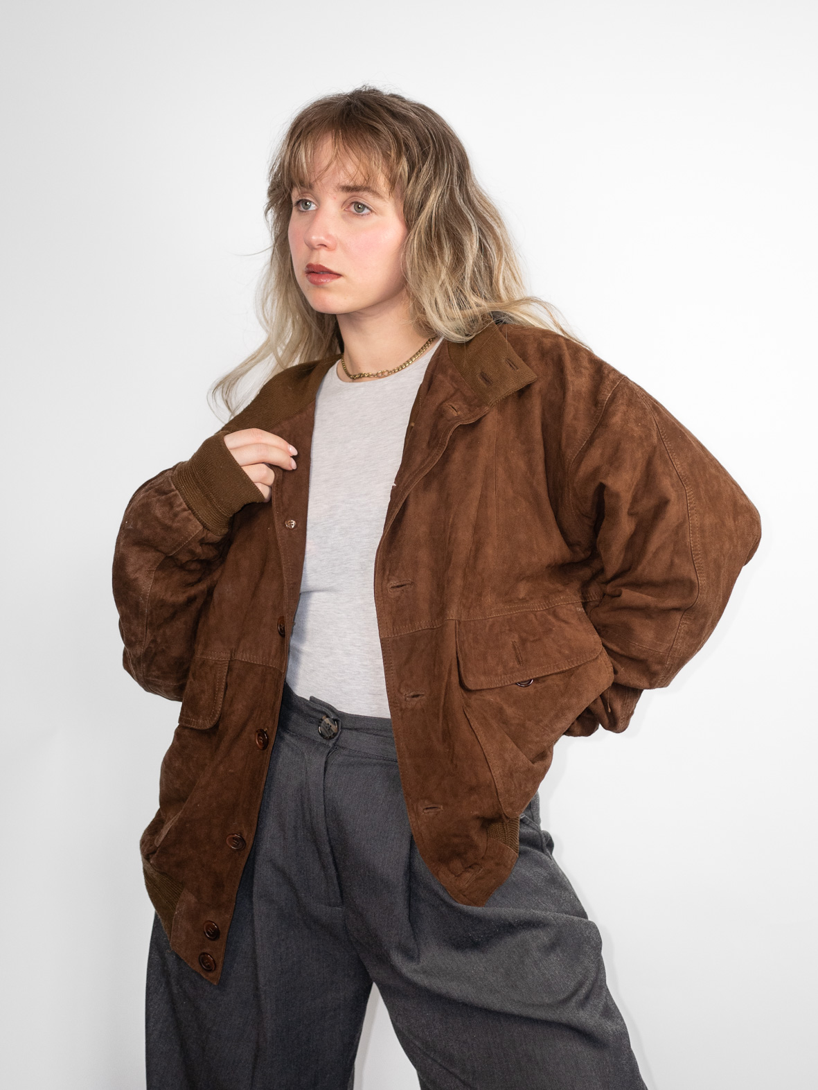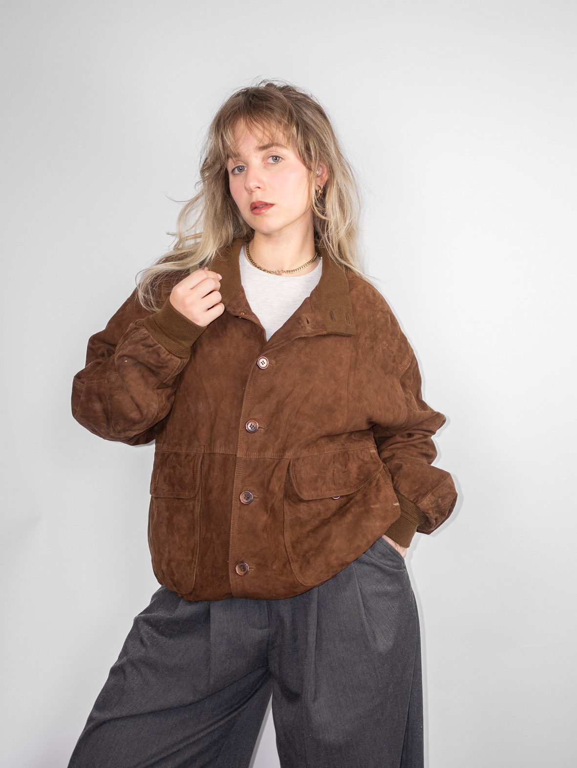 Mocca Suede Vintage 80s Bomber Jacket – M
