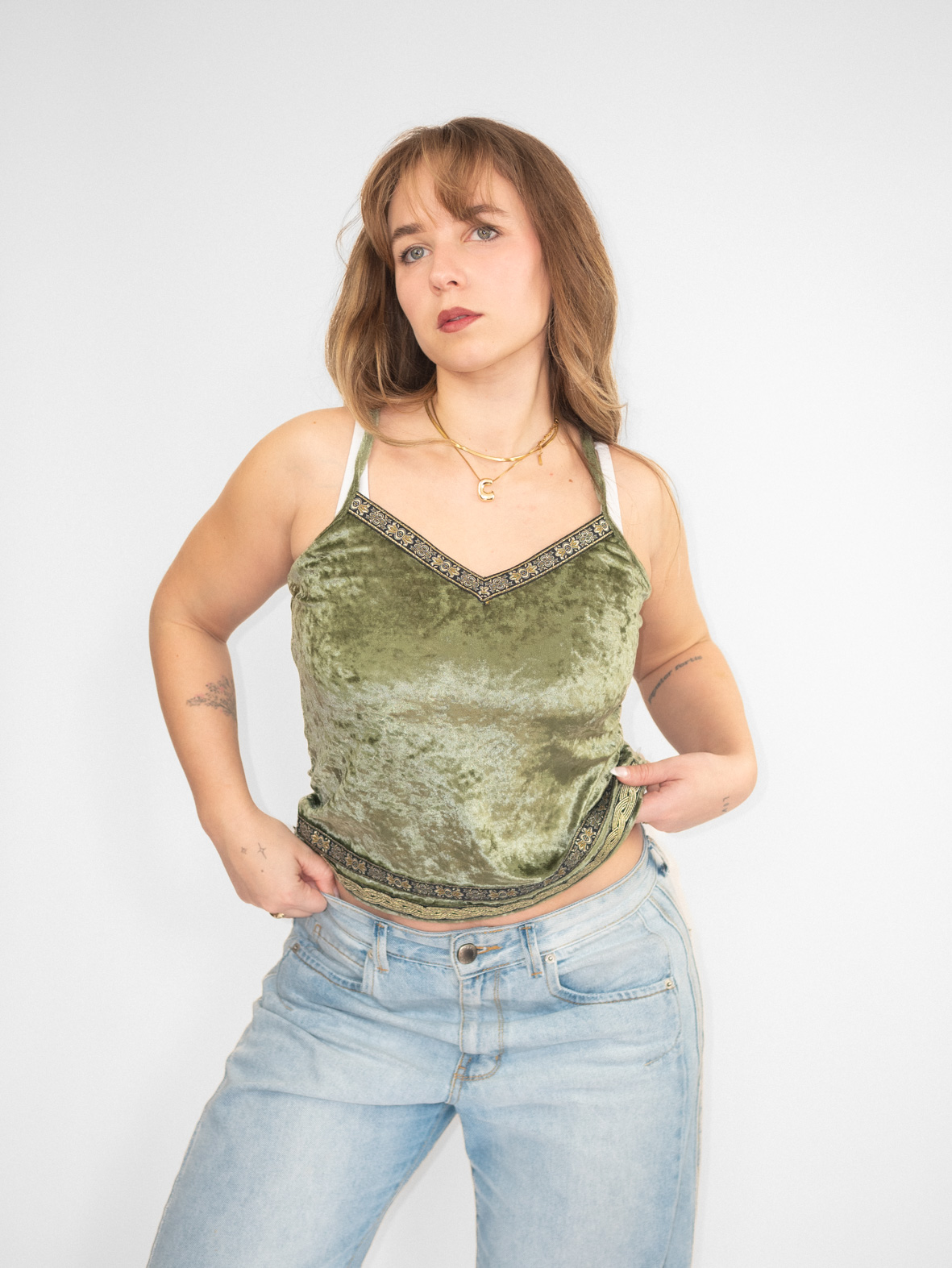Olive Velvet Y2K Cami – S/M