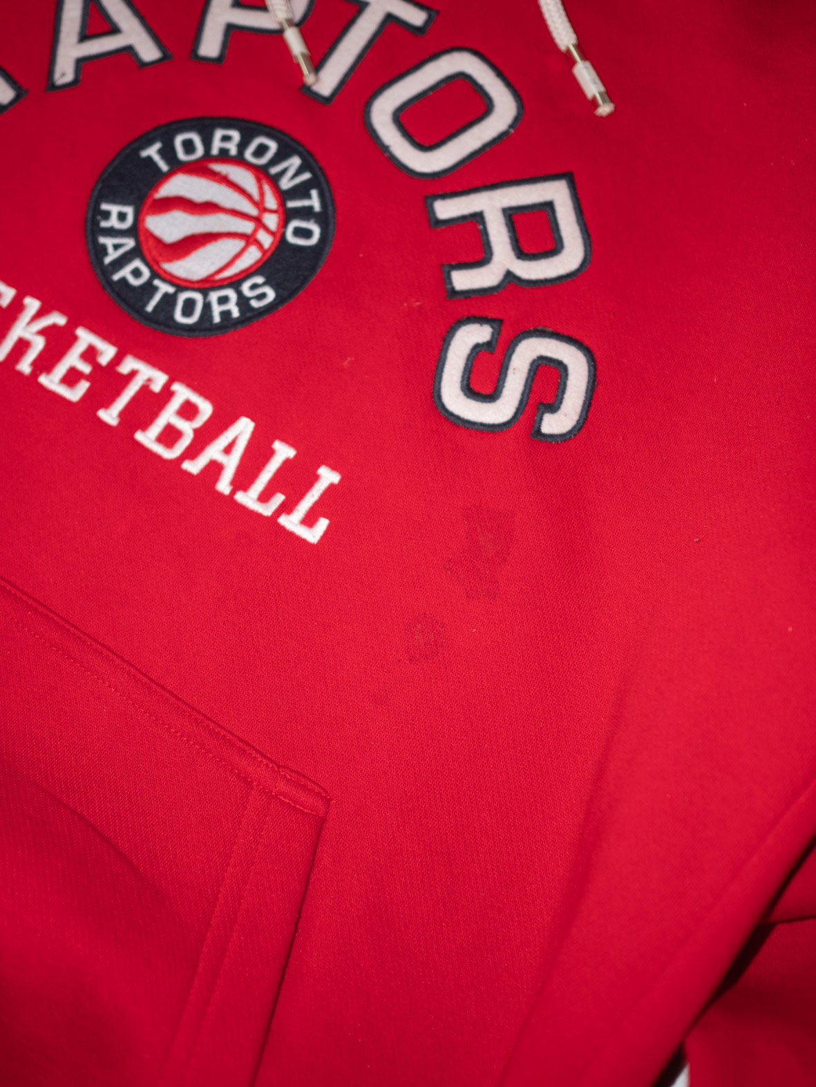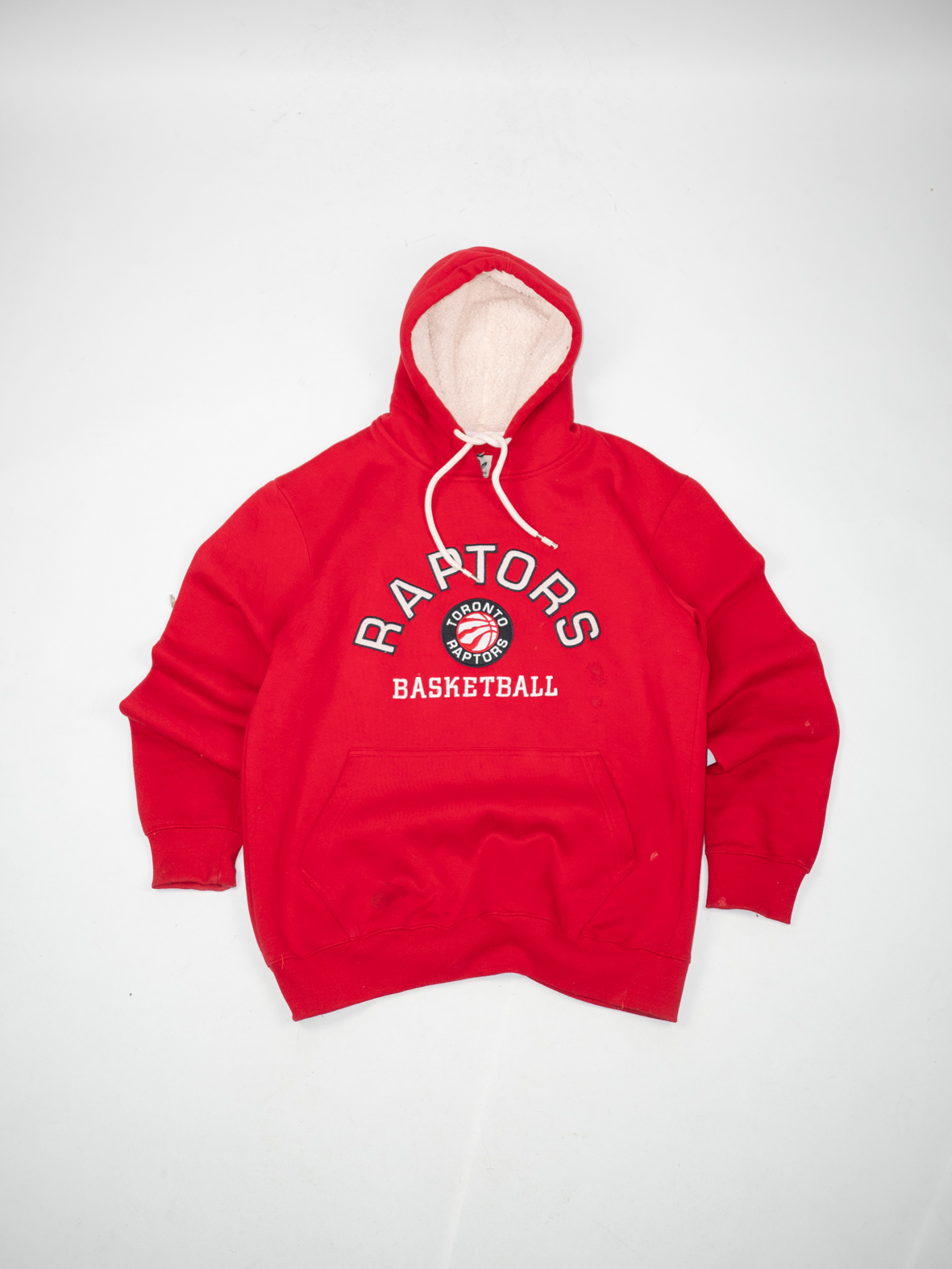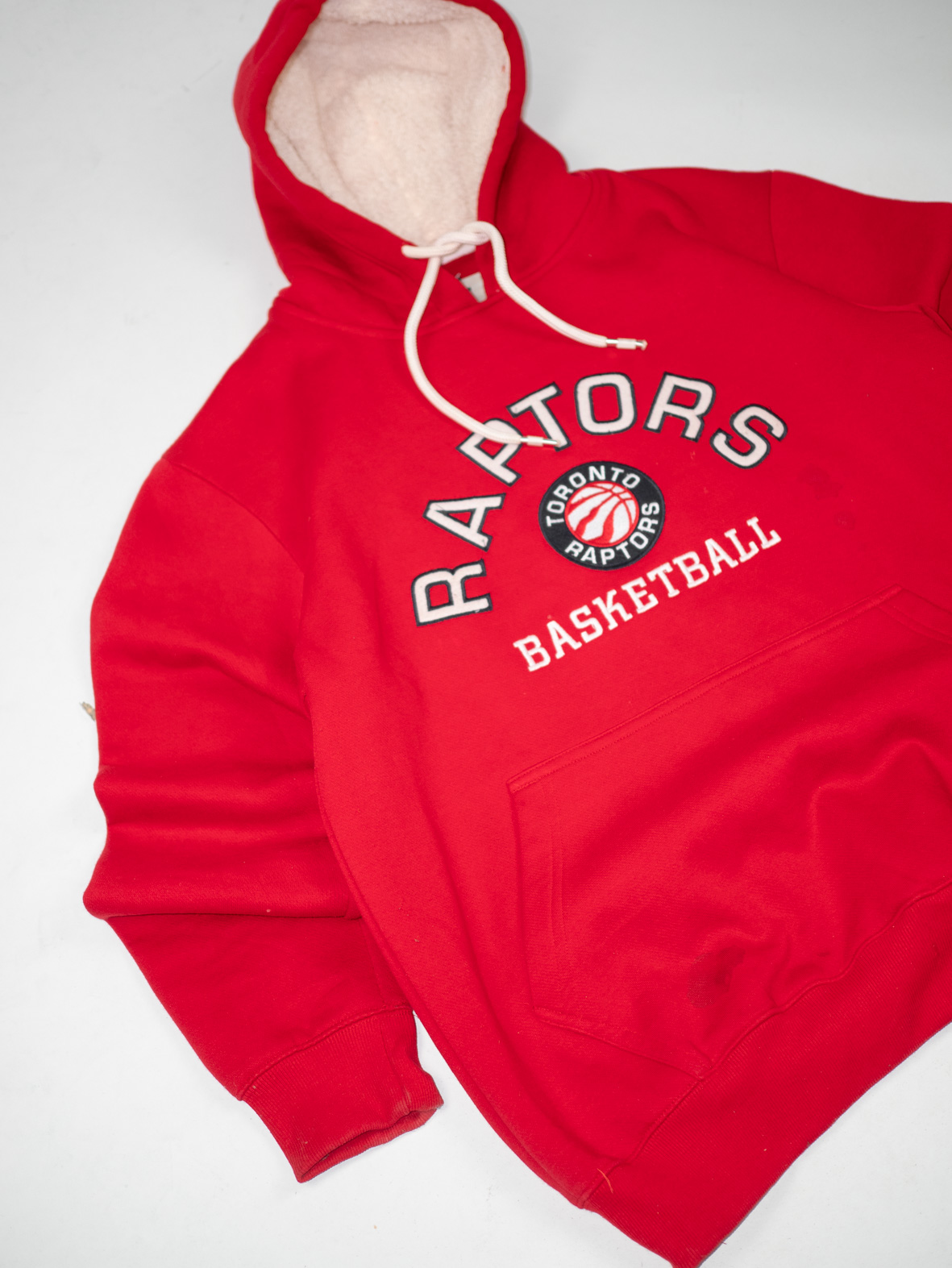 Bold and sporty, this red Toronto Raptors hoodie offers comfort and vintage charm. Style it with relaxed jeans for a casual, streetwear-inspired look. Sourced sustainably by Evita.