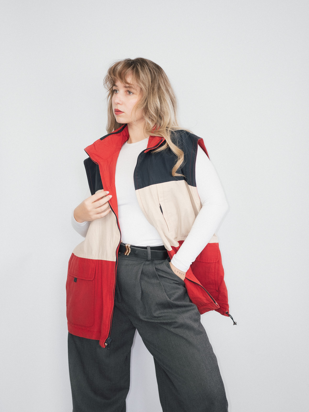 Reversible Vintage Vest (Red/Navy/Beige) – XL