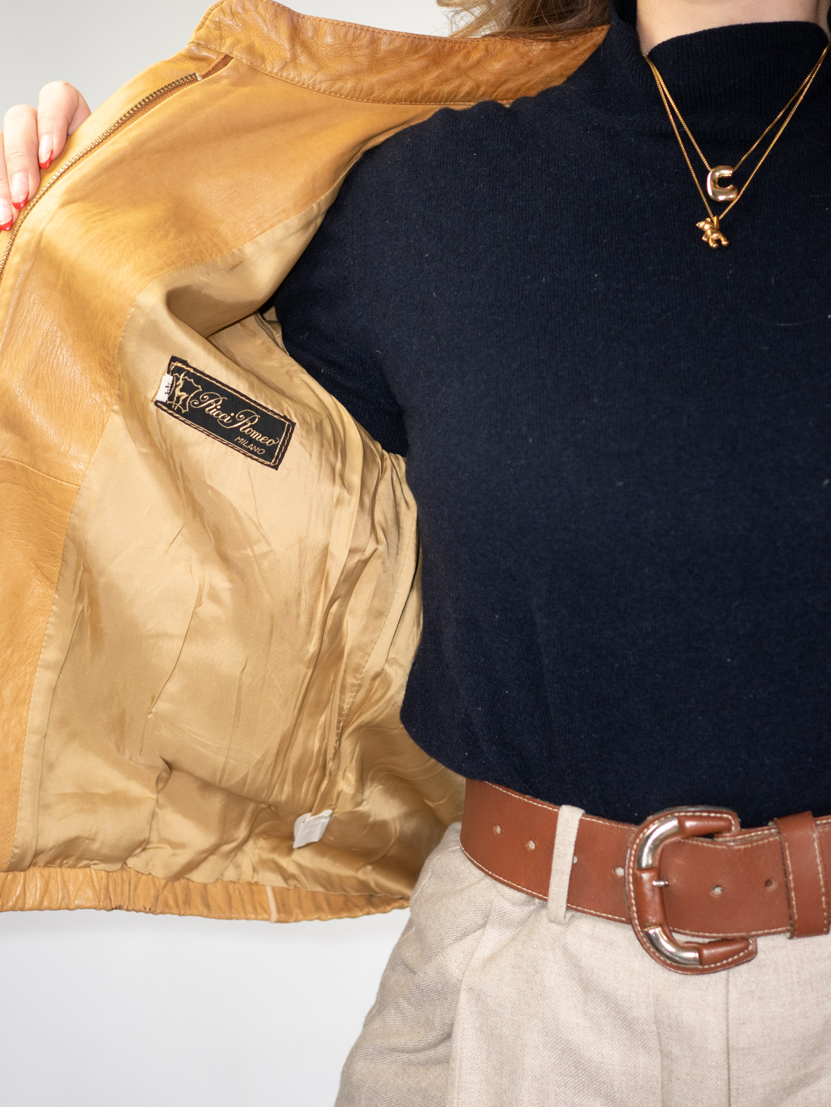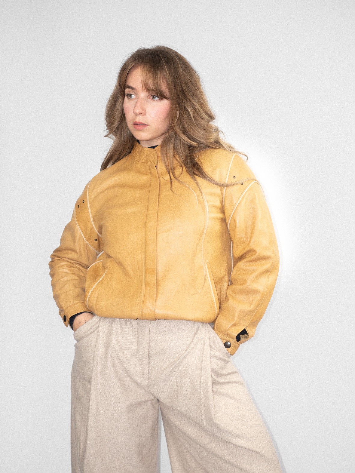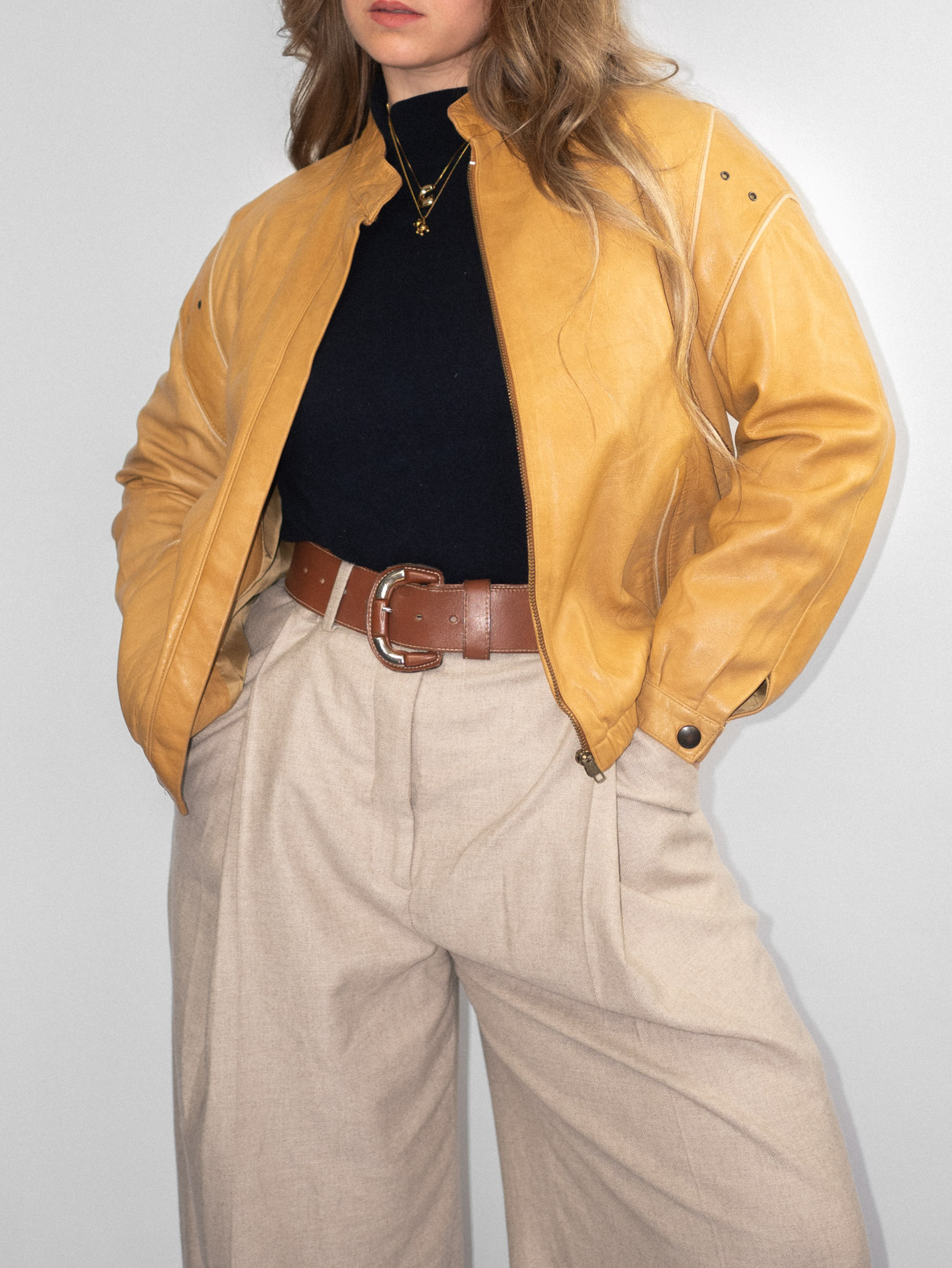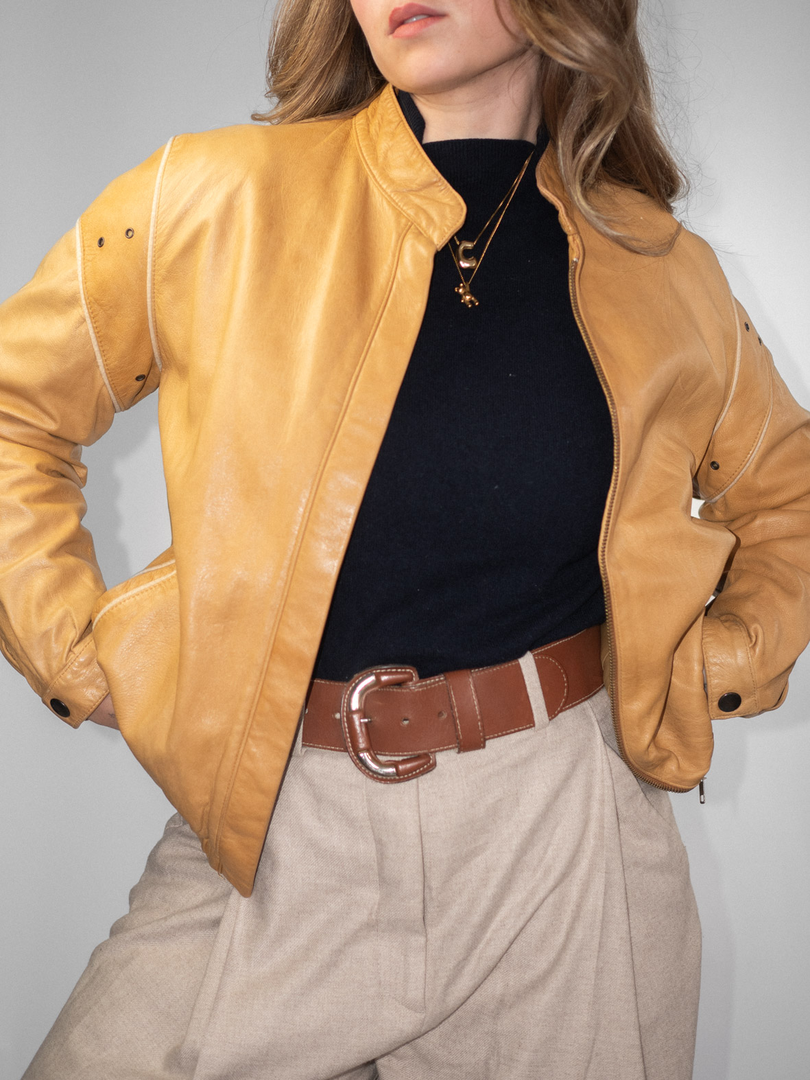 A classy vintage leather jacket in a soft sand beige tone. Minimal, timeless and incredibly easy to style.