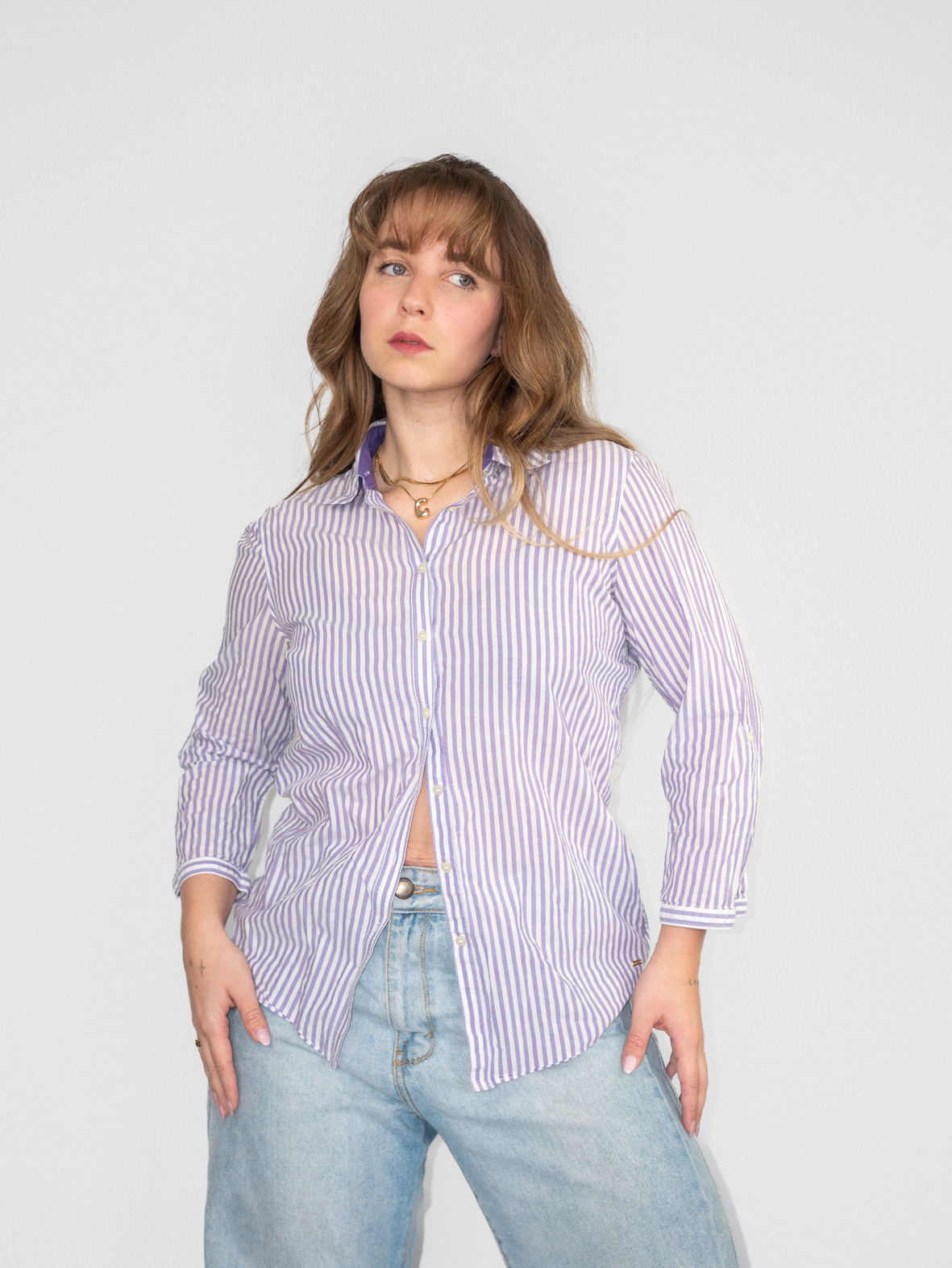 Tommy Hilfiger Striped Shirt – Lavender Button-Up – S