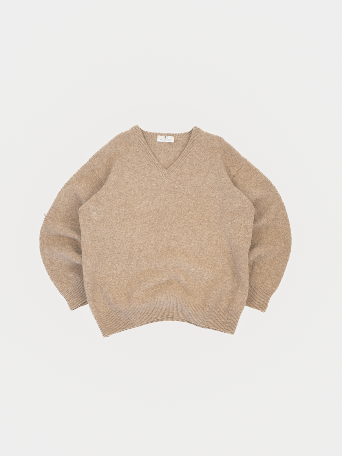 A luxury vintage gem: 100% wool Valentino Sport knit in a soft taupe shade. Premium Italian craftsmanship, elegant V-neck and a refined minimal aesthetic. This Valentino Sport knit was produced around 1995–2003, part of Valentino’s casual wear line known for premium wool basics and clean, timeless silhouettes.