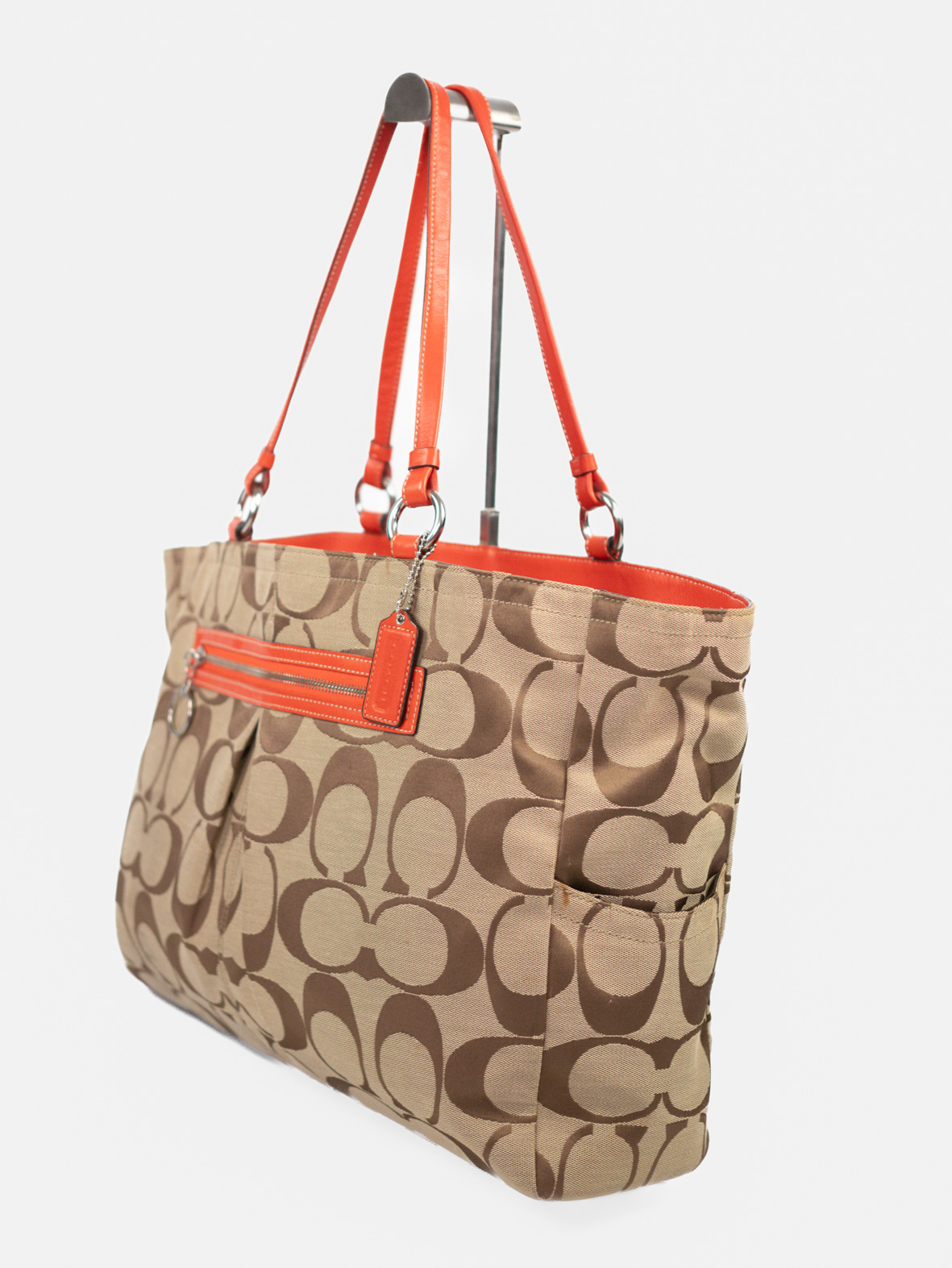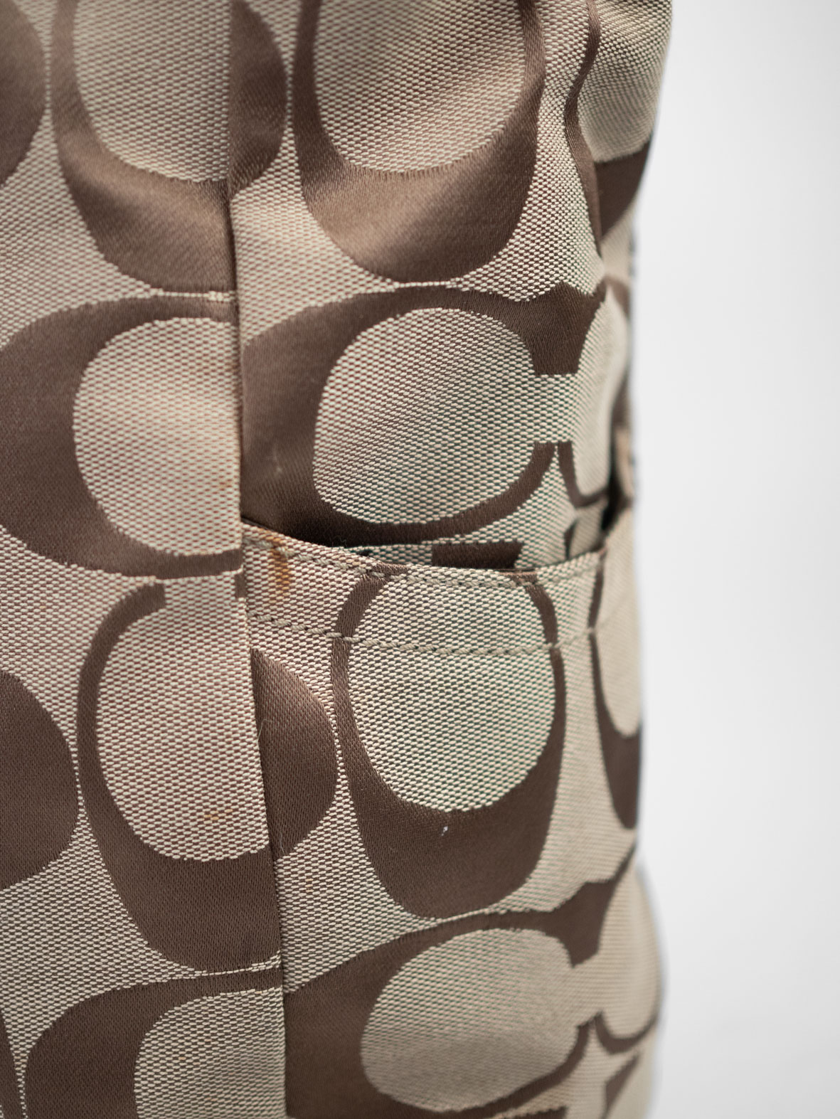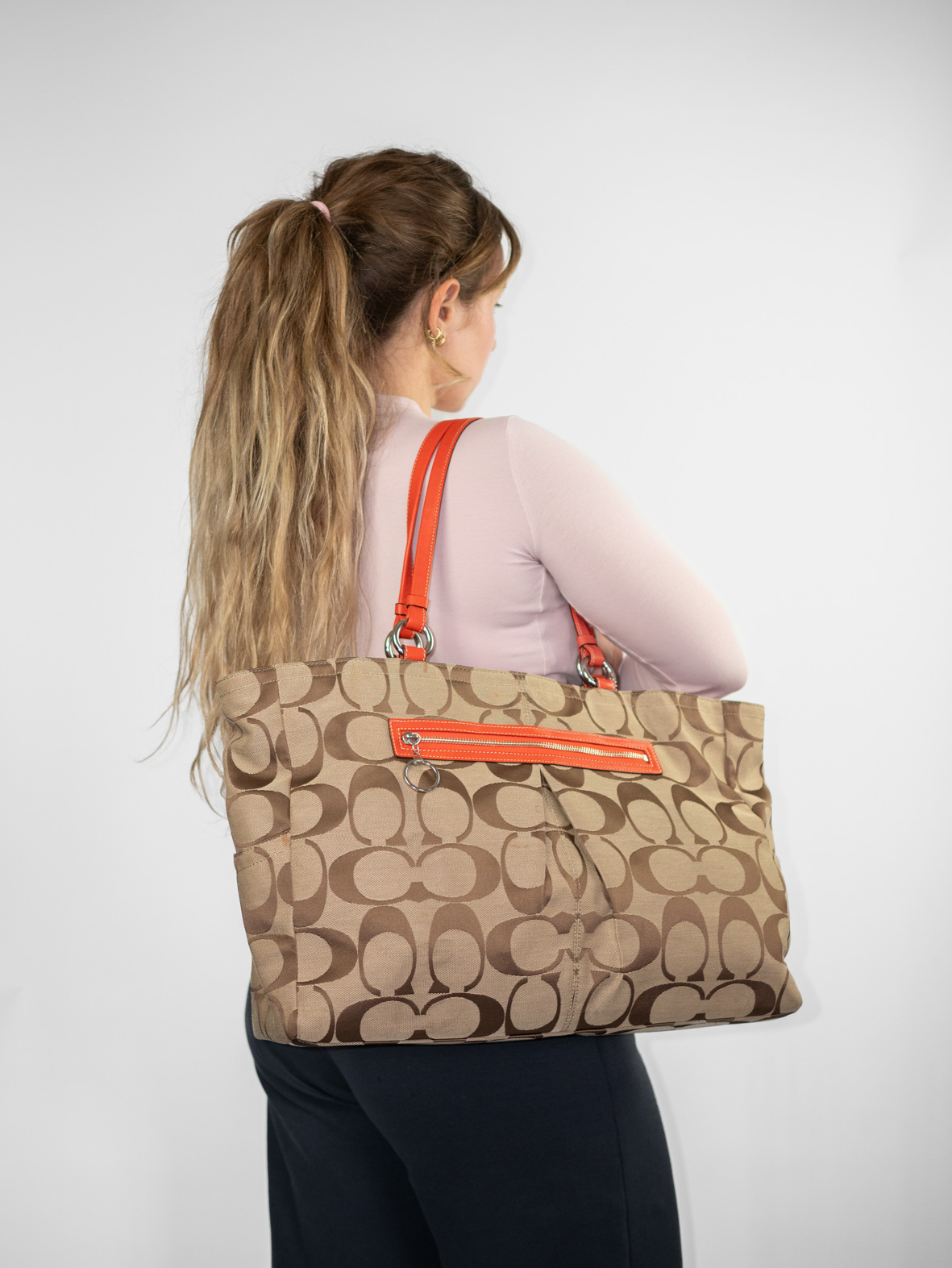This larger-sized vintage Coach bag easily fits a MacBook, notebooks and all your daily essentials – ideal for work, uni or travel. Designed in classic signature canvas with contrasting leather details for that timeless Coach look.