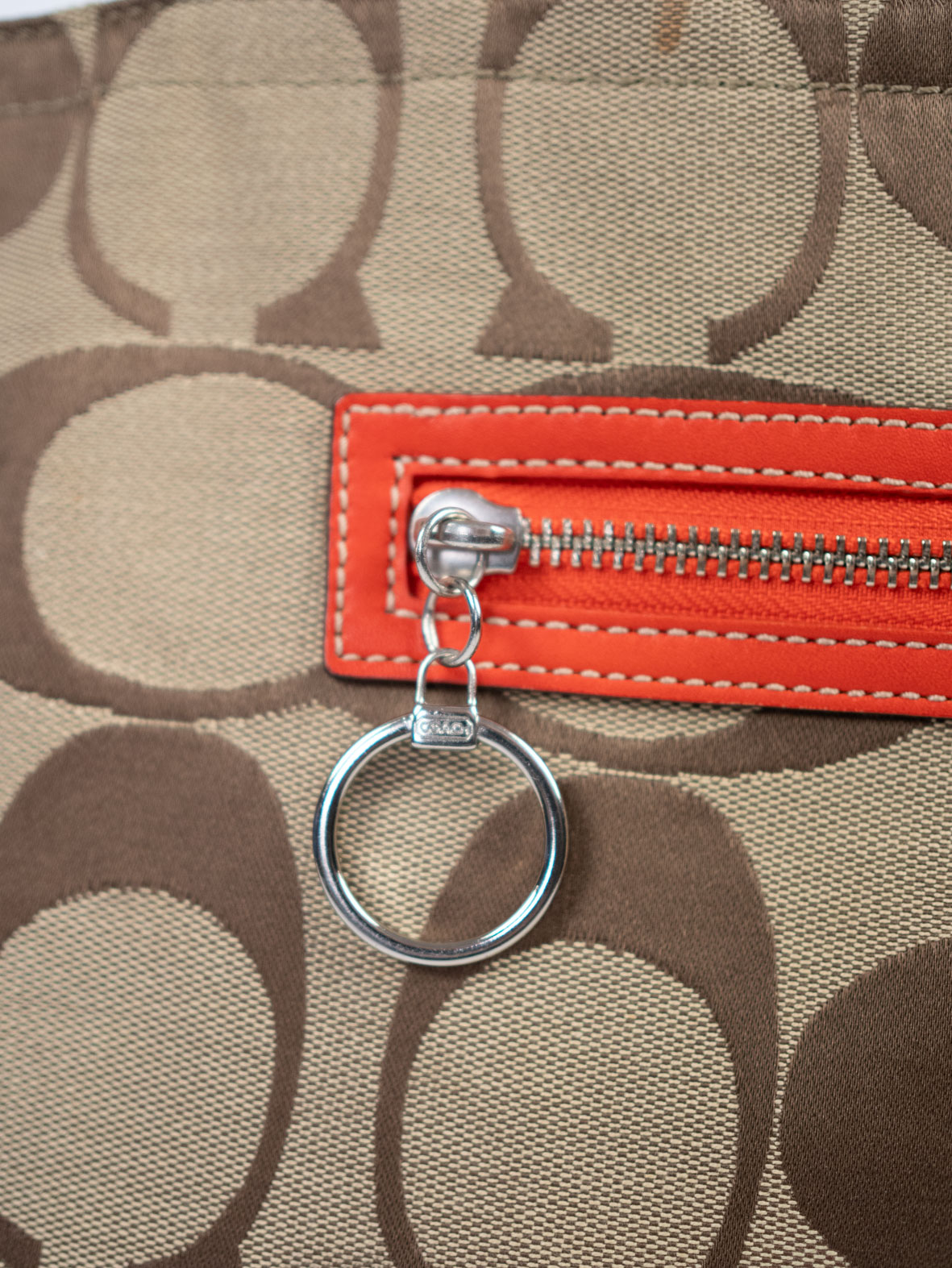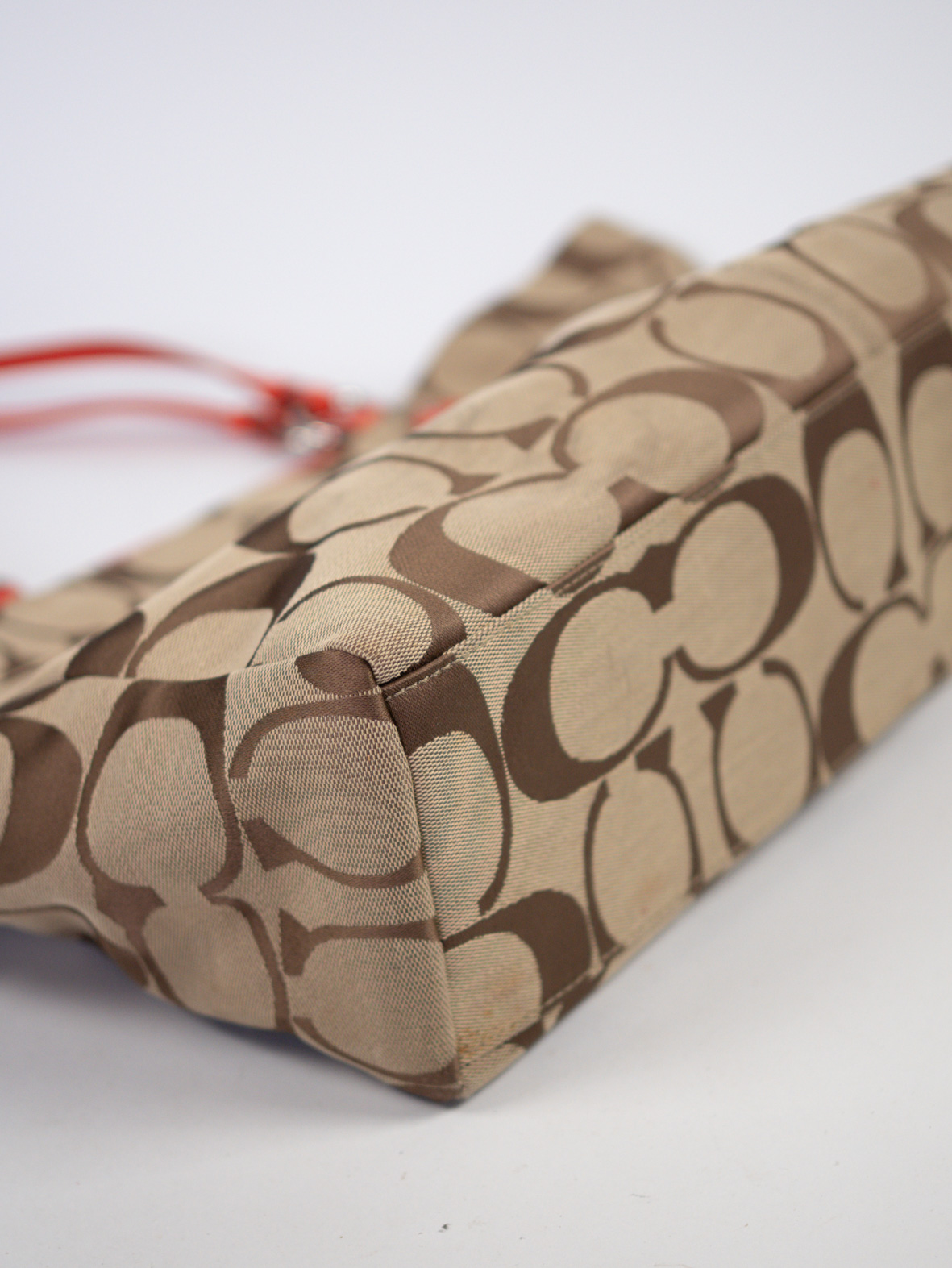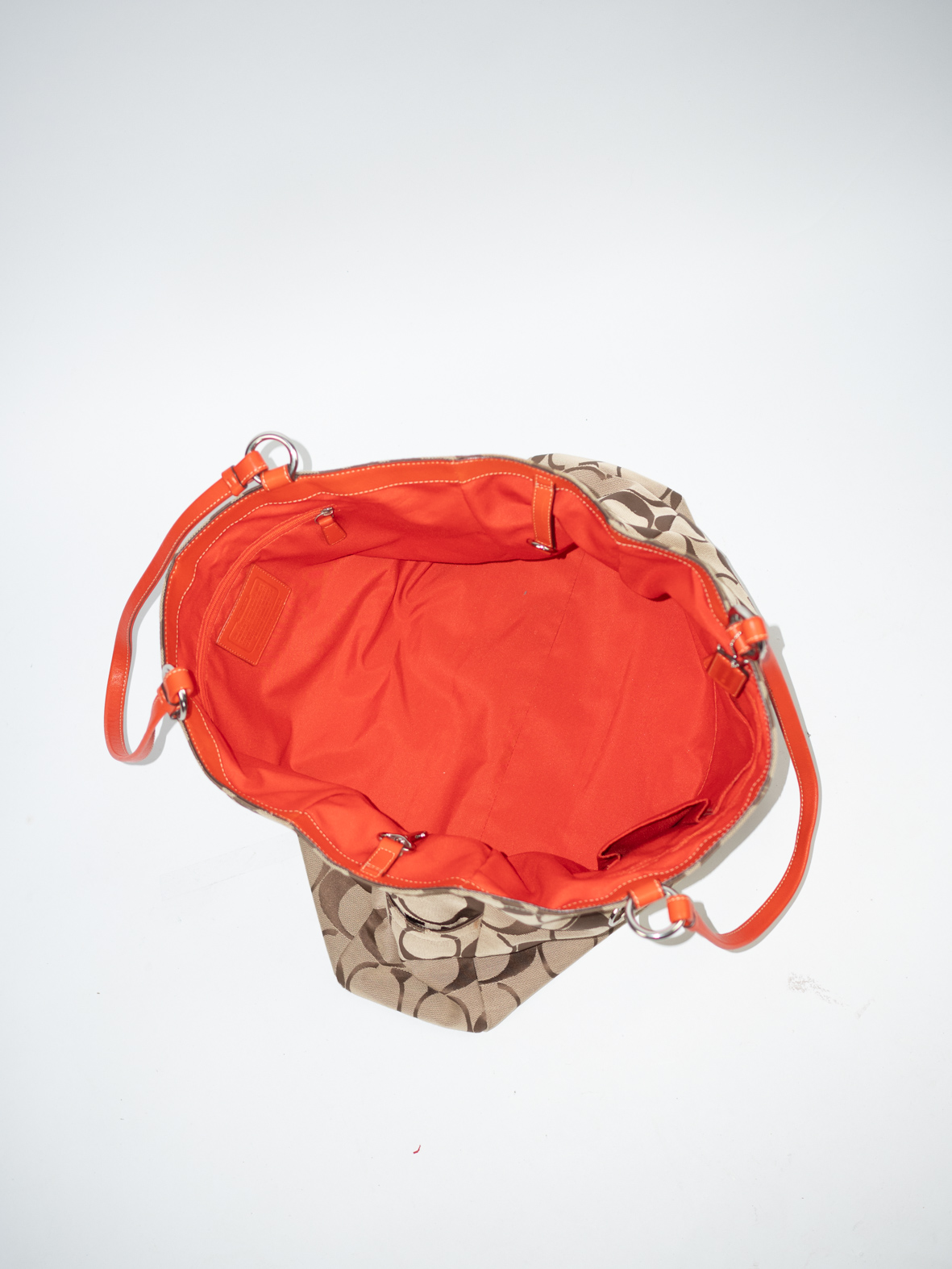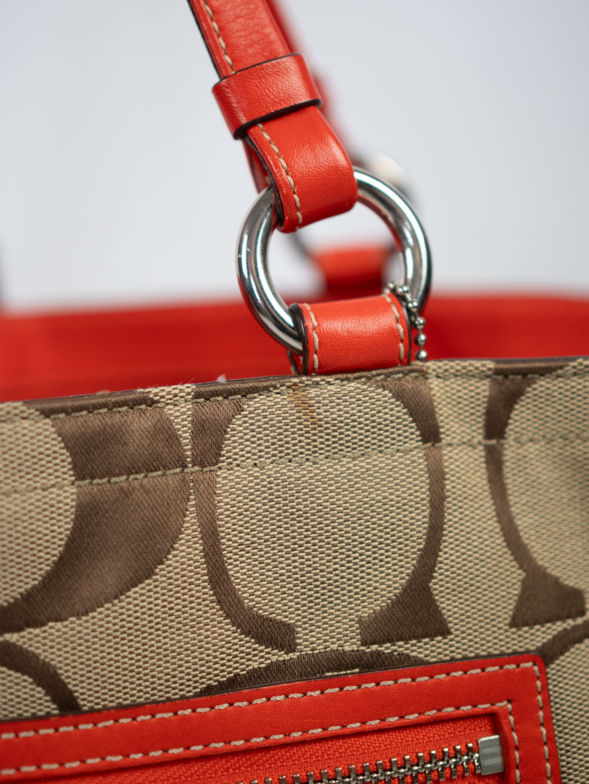 This larger-sized vintage Coach bag easily fits a MacBook, notebooks and all your daily essentials – ideal for work, uni or travel. Designed in classic signature canvas with contrasting leather details for that timeless Coach look.