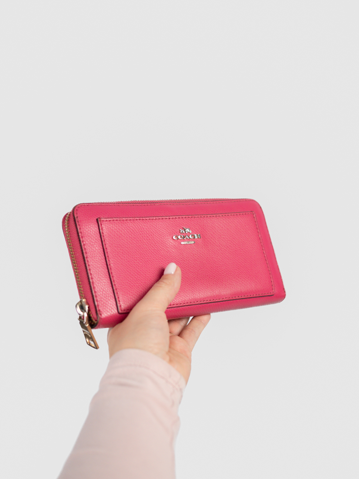 This vintage Coach wallet comes in a vibrant pink leather that instantly adds personality to your everyday essentials. Clean, structured and practical with zip-around closure.