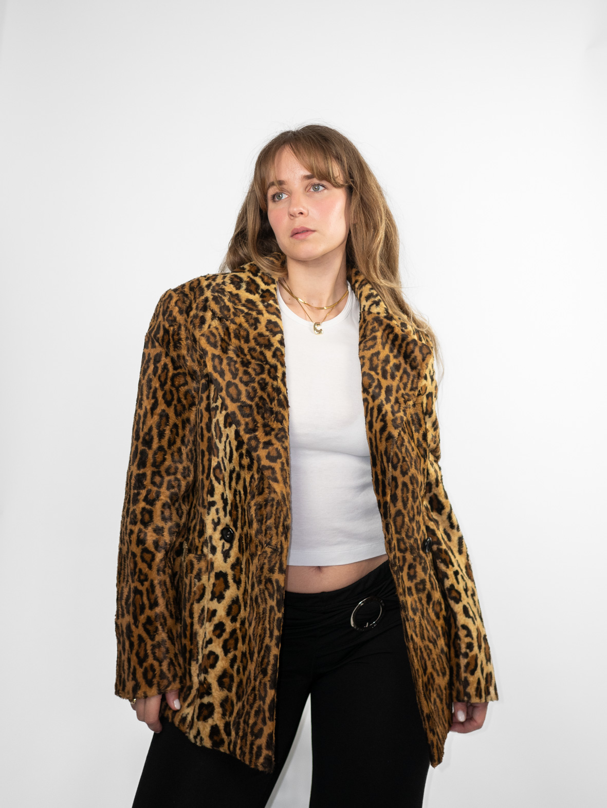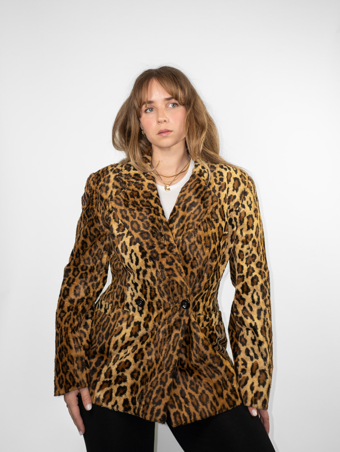 Vintage Comma Leopard Faux Fur Blazer – Statement Fit – M