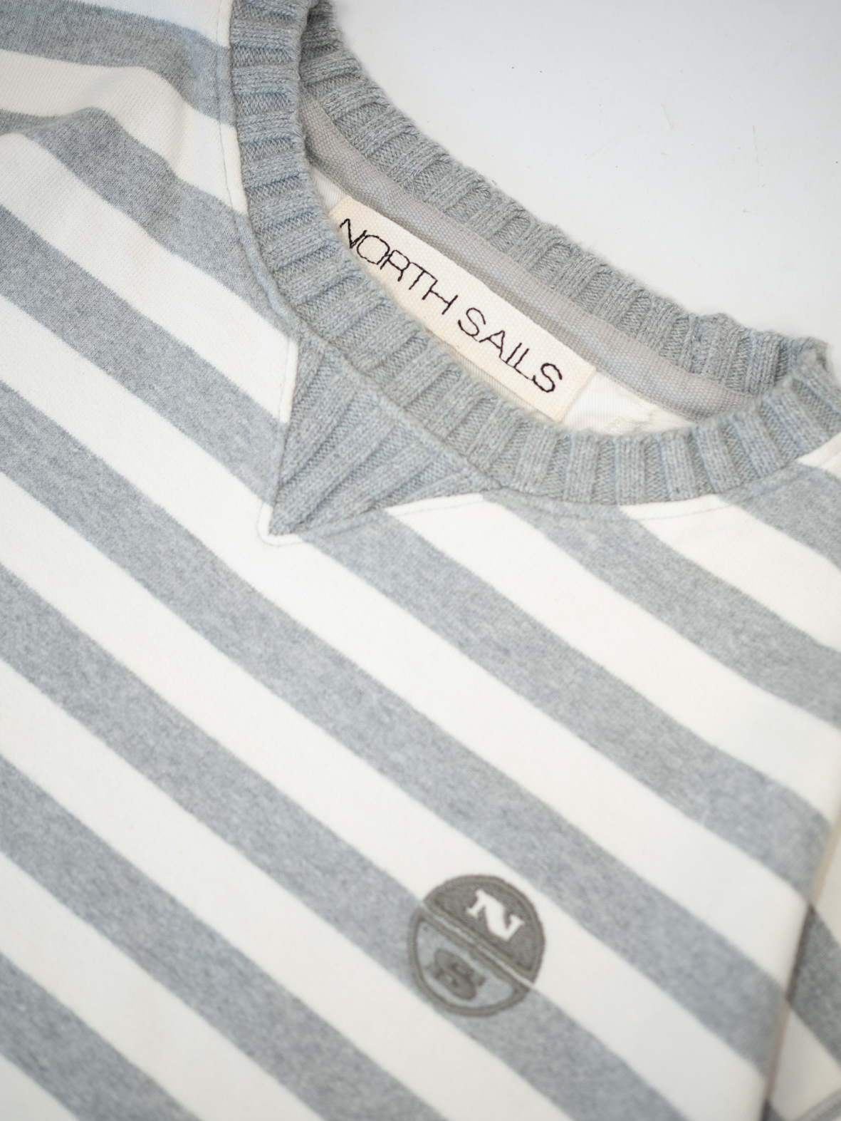 Vintage North Sails Cotton Striped Sweatshirt – Grey & White – M