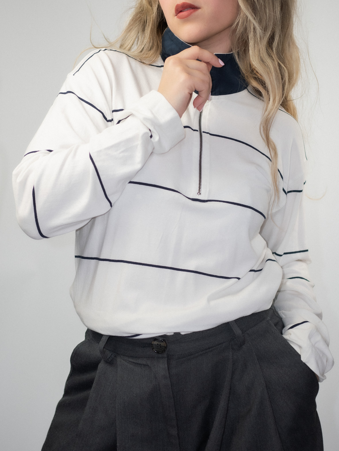 A lightweight, slightly oversized piece that brings vintage prep vibes.