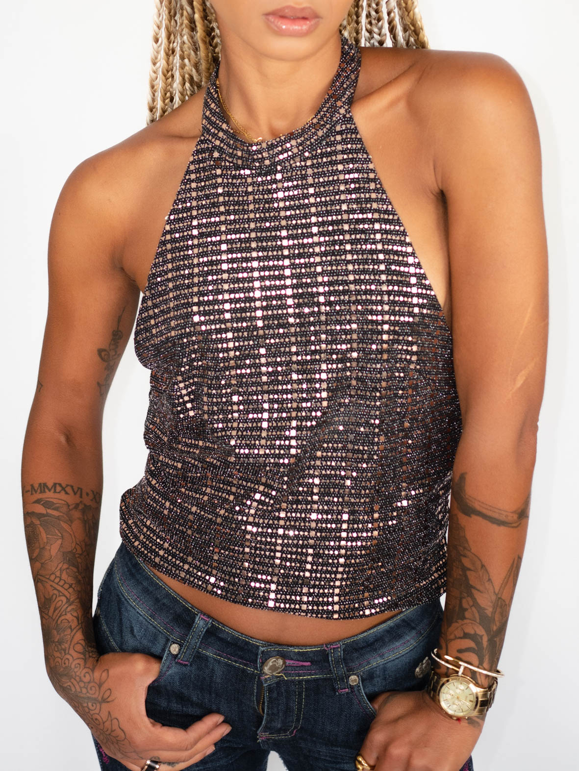 Y2K Glitter Halter Top – Iconic Club Vibes – M